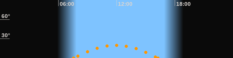 Höchster Stand (Kulmination)11:55 Uhr (h = 19.9°)