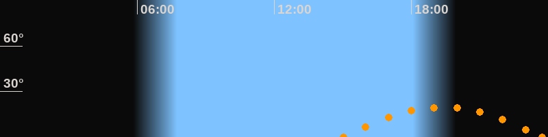 Untergang23:43 Uhr im Südwesten (αAz = 238.9°)