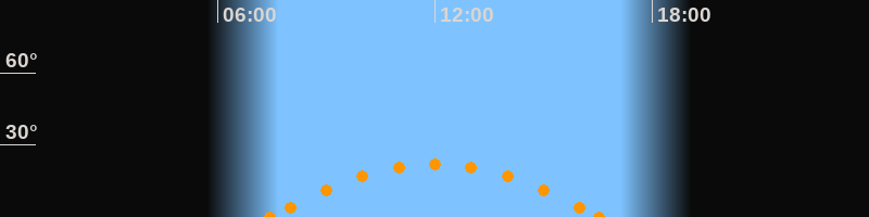 Höchster Stand (Kulmination)11:59 Uhr (h = 21.9°)