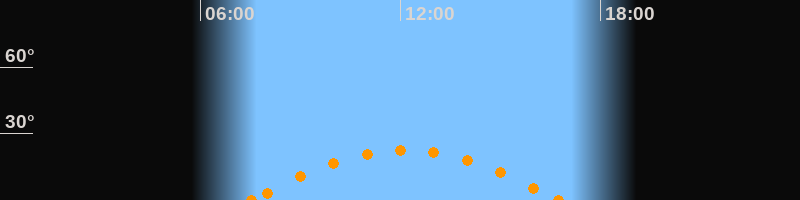Höchster Stand (Kulmination)12:08 Uhr (h = 22.4°)