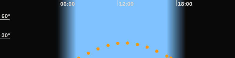 Höchster Stand (Kulmination)12:42 Uhr (h = 23.5°)