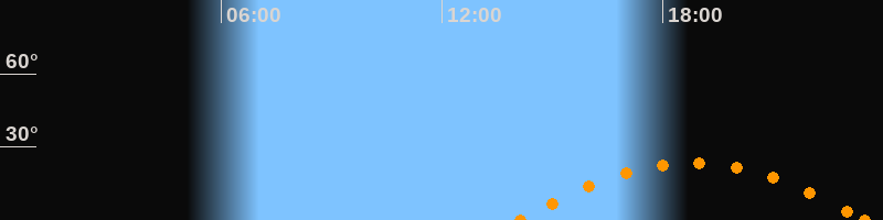 Höchster Stand (Kulmination)18:48 Uhr (h = 23.3°)