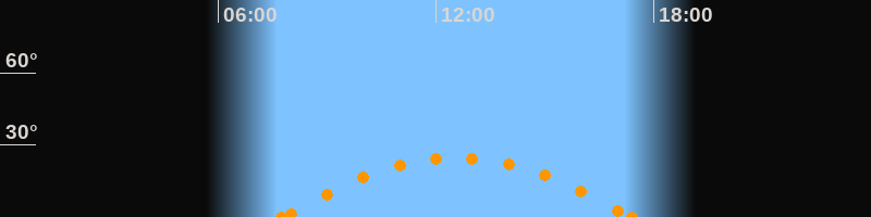 Höchster Stand (Kulmination)12:34 Uhr (h = 24.7°)