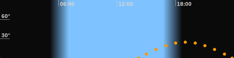 Aufgang14:11 Uhr im Südosten (αAz = 112.8°)