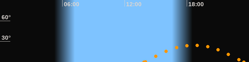Höchster Stand (Kulmination)18:40 Uhr (h = 24.6°)