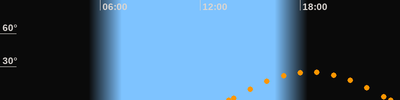 Höchster Stand (Kulmination)18:34 Uhr (h = 25.3°)