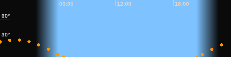 Höchster Stand (Kulmination)01:29 Uhr (h = 27.1°)