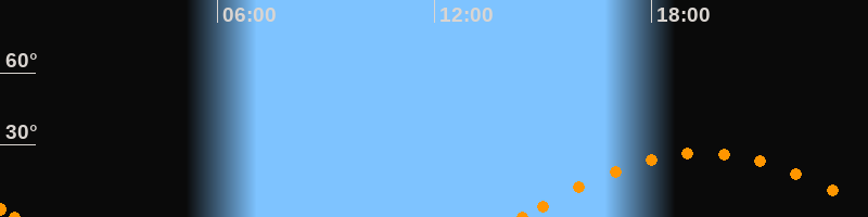 Höchster Stand (Kulmination)19:25 Uhr (h = 26.6°)