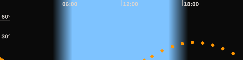 Höchster Stand (Kulmination)19:13 Uhr (h = 26.6°)