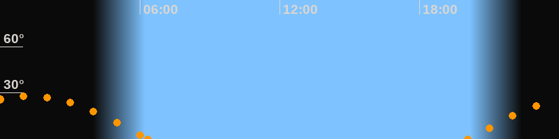 Höchster Stand (Kulmination)01:11 Uhr (h = 27.8°)