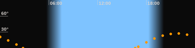 Höchster Stand (Kulmination)21:42 Uhr (h = 27.4°)