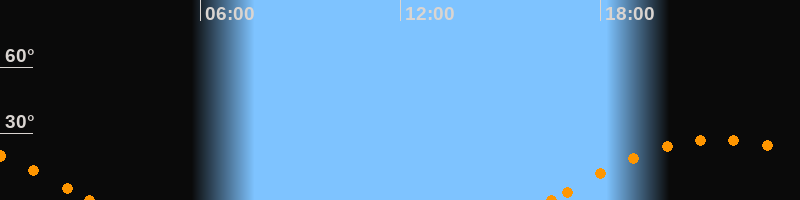 Höchster Stand (Kulmination)21:34 Uhr (h = 27.4°)