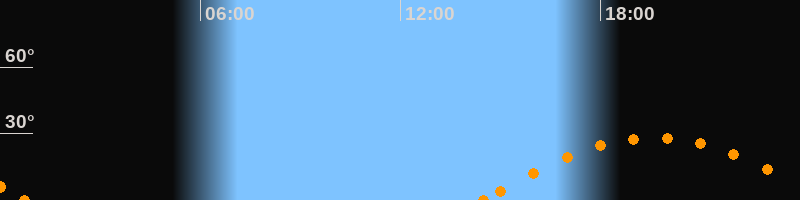 Höchster Stand (Kulmination)19:36 Uhr (h = 28.1°)
