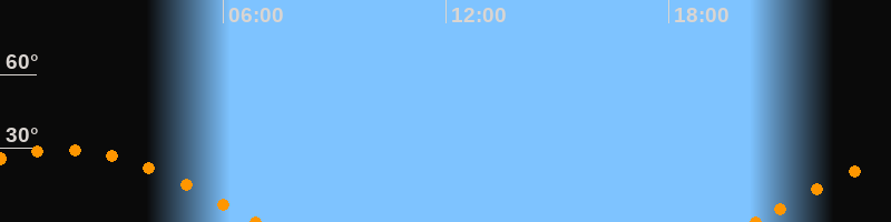 Höchster Stand (Kulmination)01:34 Uhr (h = 29.4°)