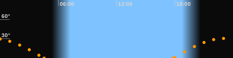 Höchster Stand (Kulmination)23:08 Uhr (h = 30.6°)