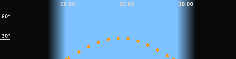 Höchster Stand (Kulmination)12:11 Uhr (h = 32.1°)