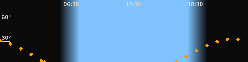 Höchster Stand (Kulmination)22:38 Uhr (h = 33.7°)