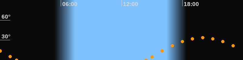 Höchster Stand (Kulmination)19:58 Uhr (h = 33.6°)