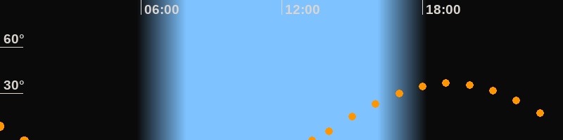 Höchster Stand (Kulmination)19:08 Uhr (h = 36.9°)