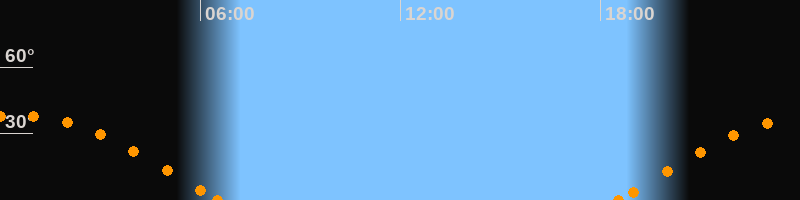 Höchster Stand (Kulmination)00:29 Uhr (h = 38.1°)