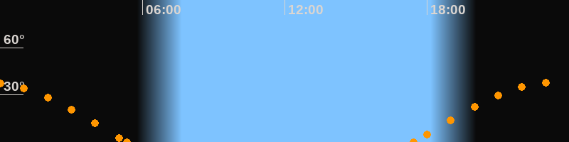Höchster Stand (Kulmination)23:21 Uhr (h = 38°)