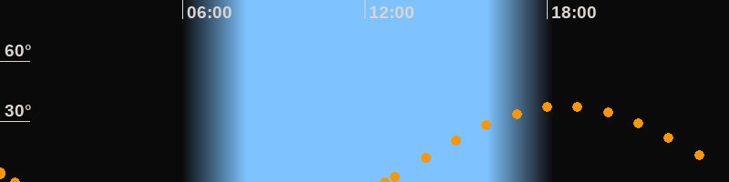 Höchster Stand (Kulmination)18:34 Uhr (h = 37.7°)