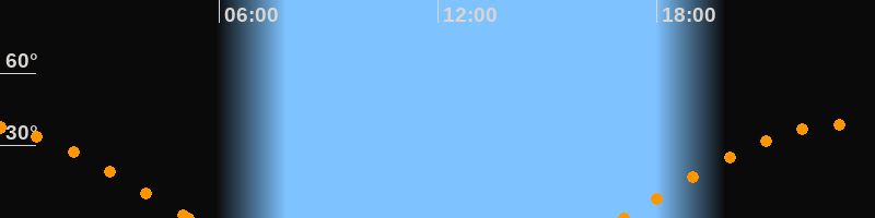 Höchster Stand (Kulmination)23:06 Uhr (h = 38.8°)
