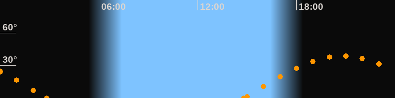 Höchster Stand (Kulmination)20:46 Uhr (h = 38.6°)
