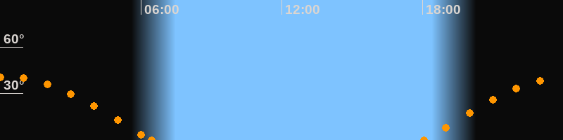 Höchster Stand (Kulmination)00:13 Uhr (h = 40.6°)
