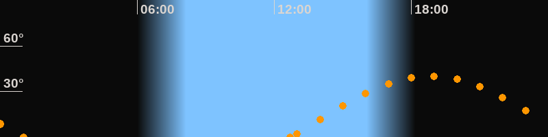 Höchster Stand (Kulmination)18:50 Uhr (h = 40.3°)