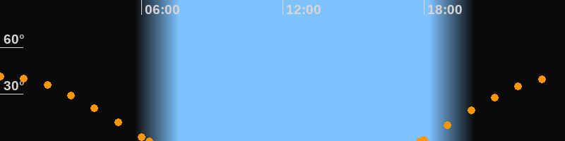 Höchster Stand (Kulmination)00:03 Uhr (h = 41.5°)