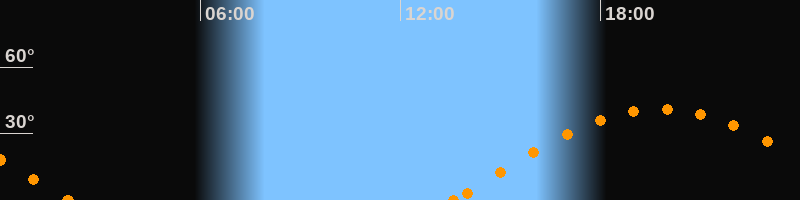 Höchster Stand (Kulmination)19:46 Uhr (h = 41.1°)