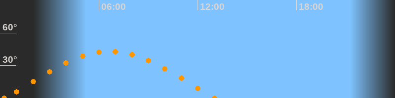 Höchster Stand (Kulmination)06:40 Uhr (h = 43.1°)
