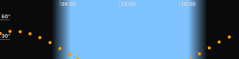 Höchster Stand (Kulmination)01:25 Uhr (h = 42.5°)