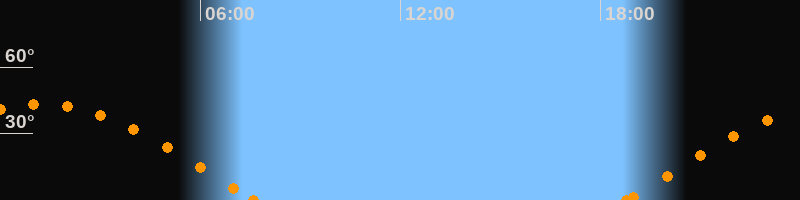 Höchster Stand (Kulmination)01:10 Uhr (h = 43.3°)