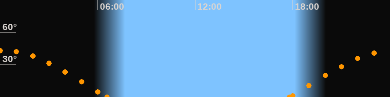 Höchster Stand (Kulmination)00:09 Uhr (h = 43.2°)