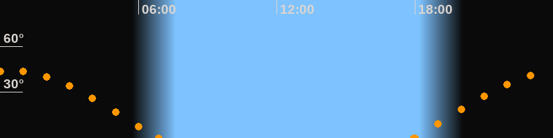 Höchster Stand (Kulmination)00:23 Uhr (h = 44°)