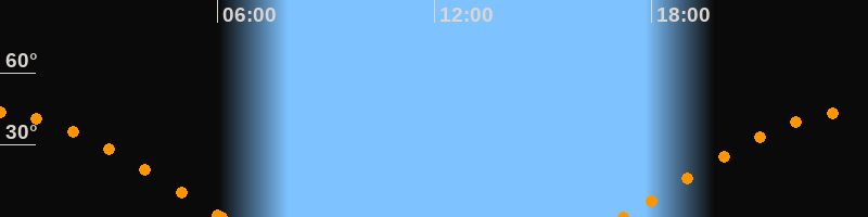 Höchster Stand (Kulmination)23:39 Uhr (h = 43.9°)