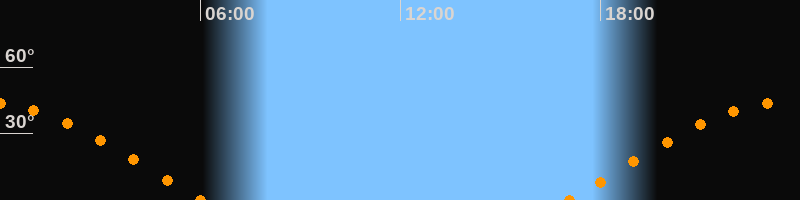 Höchster Stand (Kulmination)23:30 Uhr (h = 43.9°)