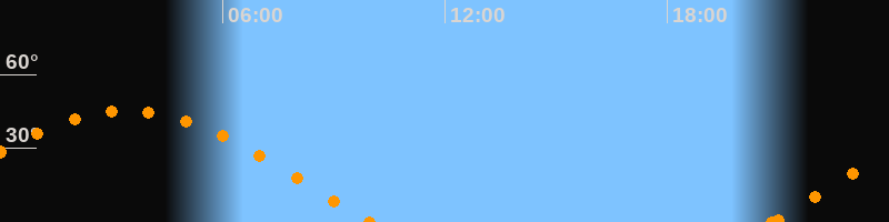 Höchster Stand (Kulmination)03:26 Uhr (h = 45.3°)