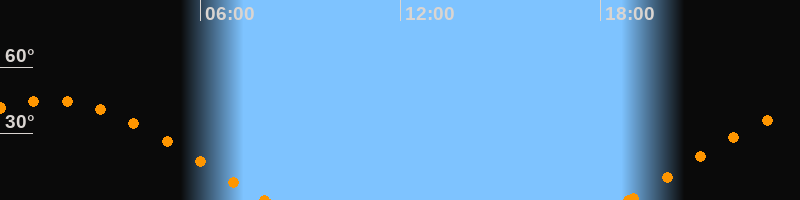 Höchster Stand (Kulmination)01:21 Uhr (h = 45°)