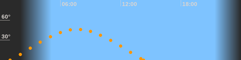 Höchster Stand (Kulmination)07:40 Uhr (h = 46.3°)