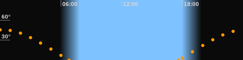 Höchster Stand (Kulmination)00:10 Uhr (h = 45.6°)