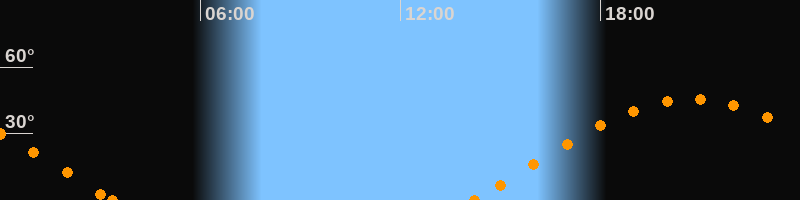 Aufgang14:13 Uhr im Osten (αAz = 79.7°)