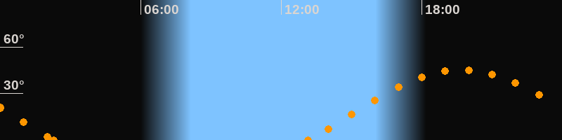 Höchster Stand (Kulmination)19:41 Uhr (h = 45.3°)