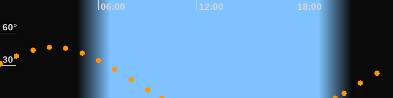 Höchster Stand (Kulmination)03:12 Uhr (h = 46.9°)