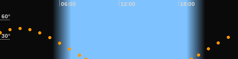 Höchster Stand (Kulmination)02:00 Uhr (h = 46.7°)