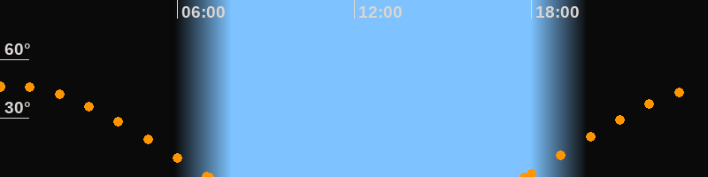 Höchster Stand (Kulmination)00:23 Uhr (h = 46.5°)