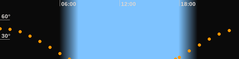 Höchster Stand (Kulmination)00:15 Uhr (h = 46.5°)