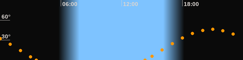 Höchster Stand (Kulmination)20:54 Uhr (h = 46.2°)